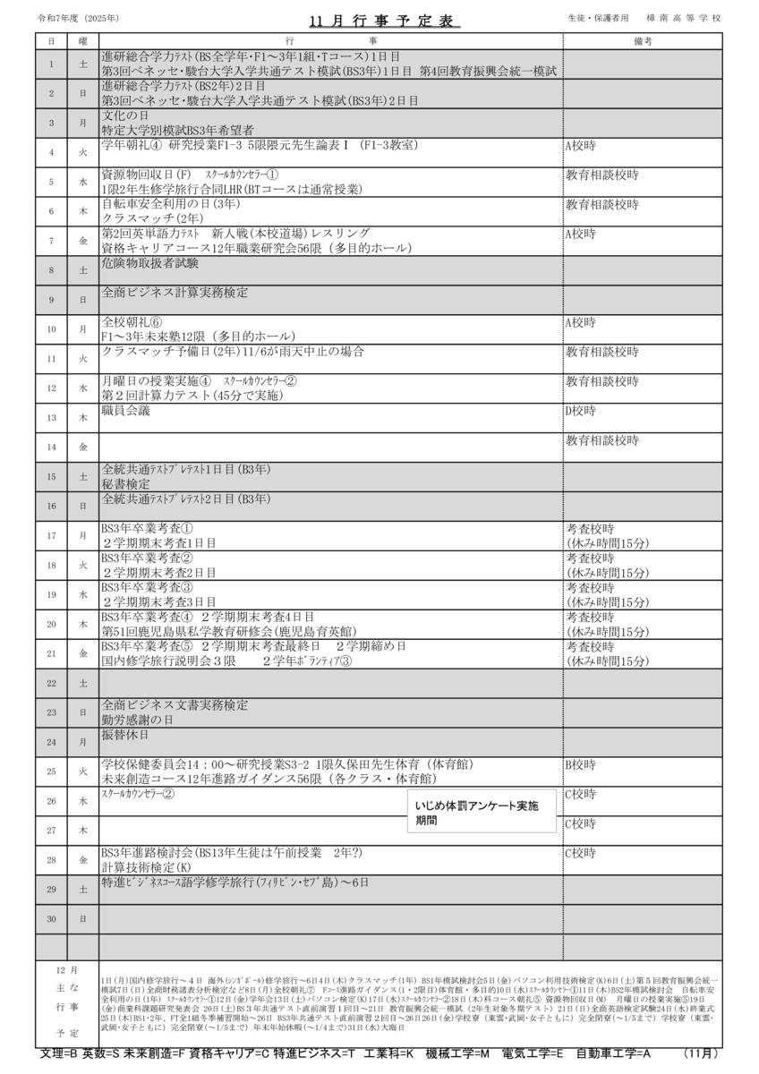 年間行事 令和7年度