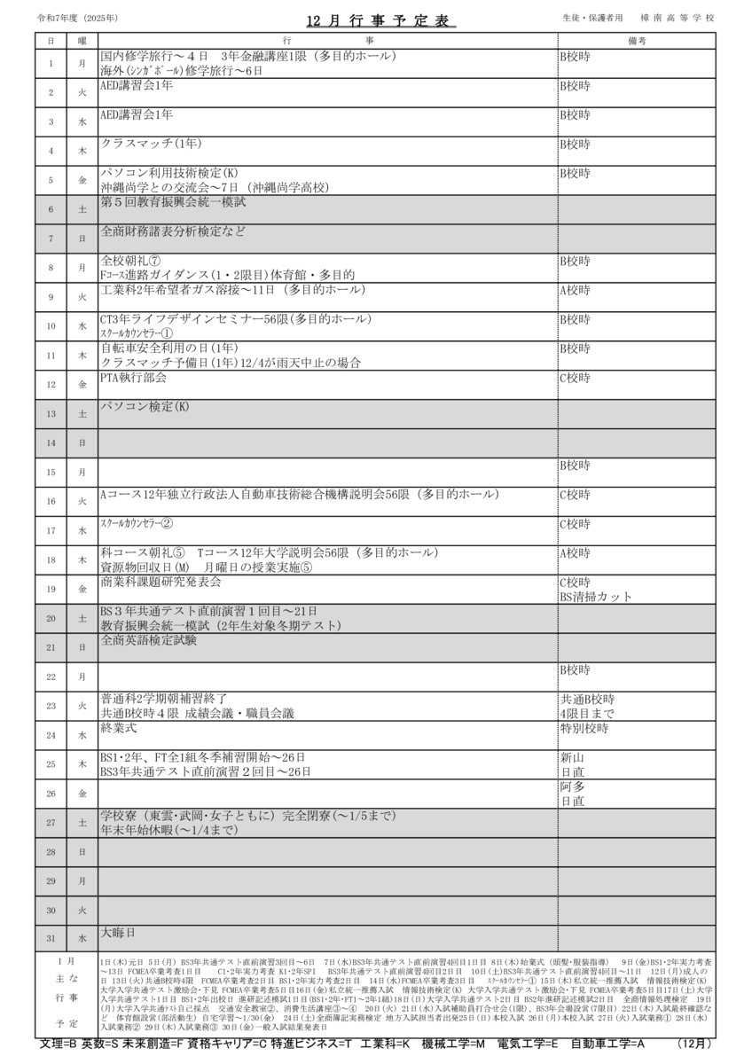 年間行事 令和7年度