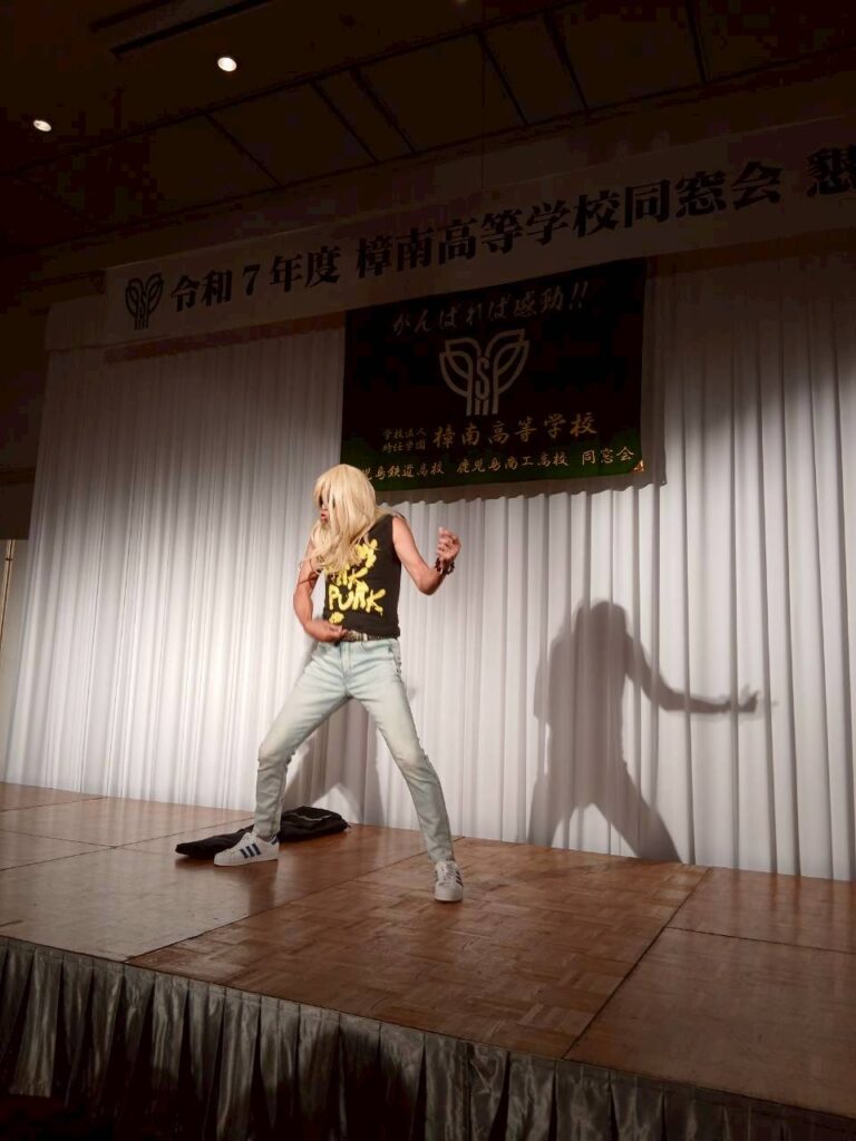 終盤では会長と双子の若手同窓生2名もステージに上がり一緒に熱い演技を披露していただき、大歓声となりました。