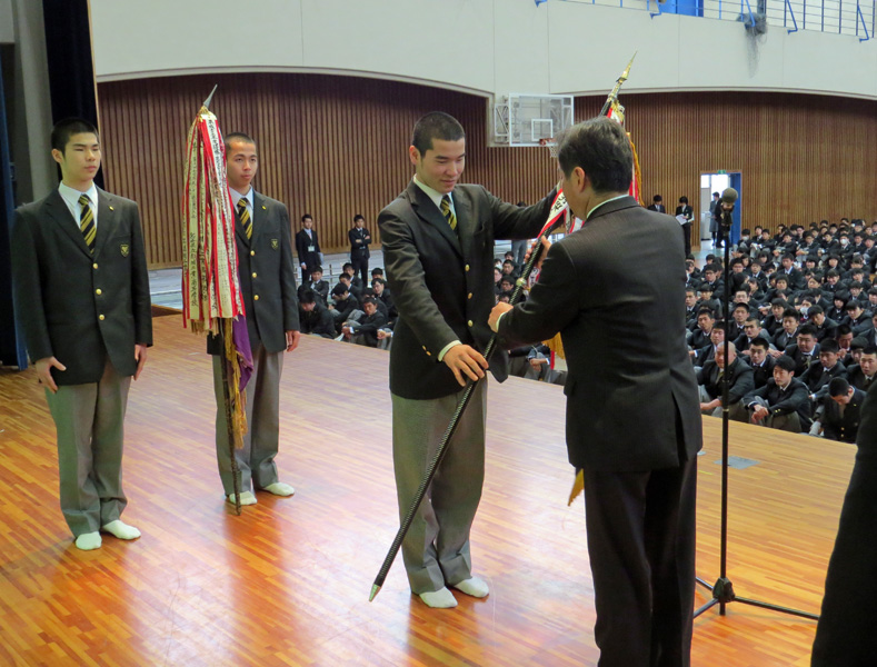 工業科 機械工学コース3年 平山 宜久 君(北指宿中出身)が、「負けない事 投げ出さない事 逃げ出さない事 信じ抜く事」(大事MANブラザーズバンド『それが大事』)のメッセージとともに、進路実現に向けた決意を述べました。