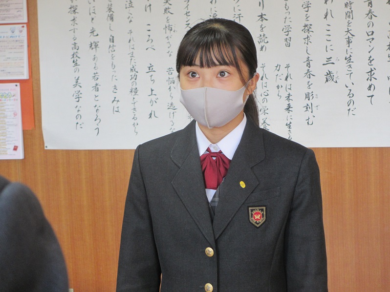 「たくさんの先生方がサポートしてくださった恩義を自分の胸に刻み、残りの学校生活を大切にすることで、来年からの新生活につなげていきたいと思います。」