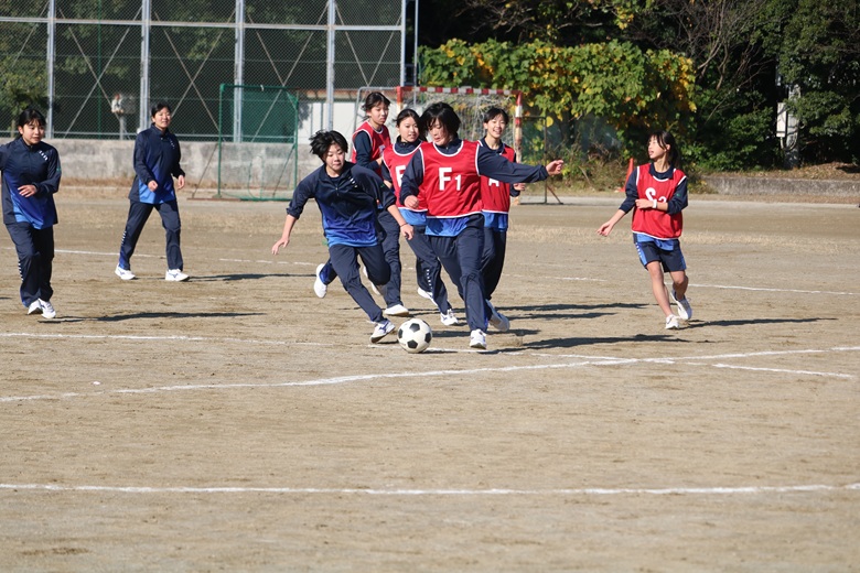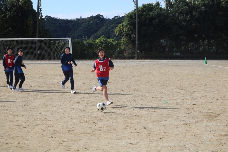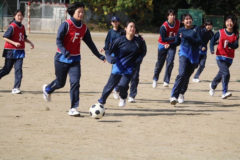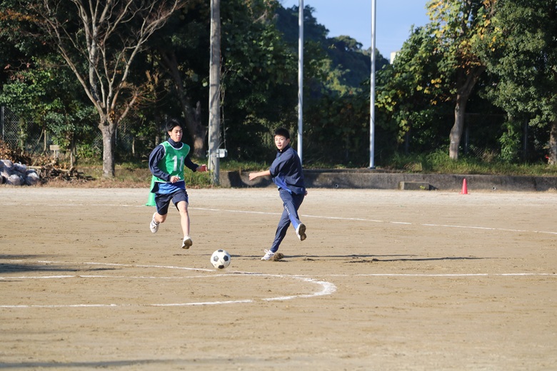 本日は、12月4日(木)に行われた1年生のクラスマッチの様子をお届けいたします。1年は初めてのクラスマッチに胸を躍らせながらグラウンドに立ちました。