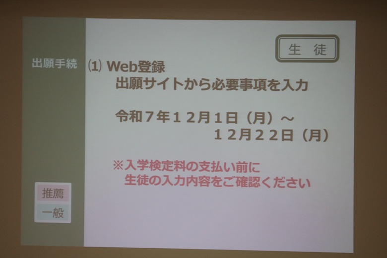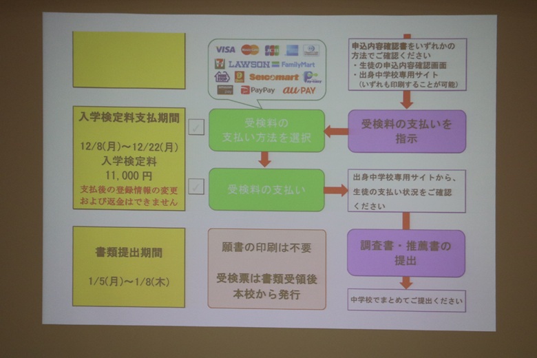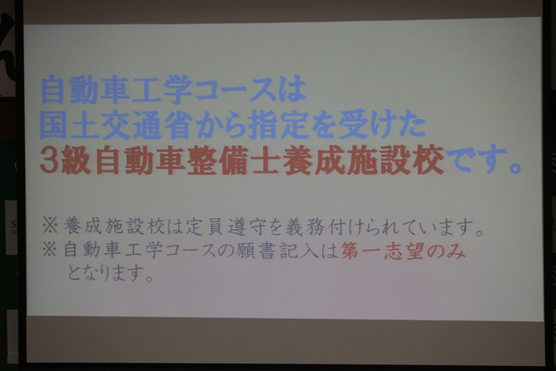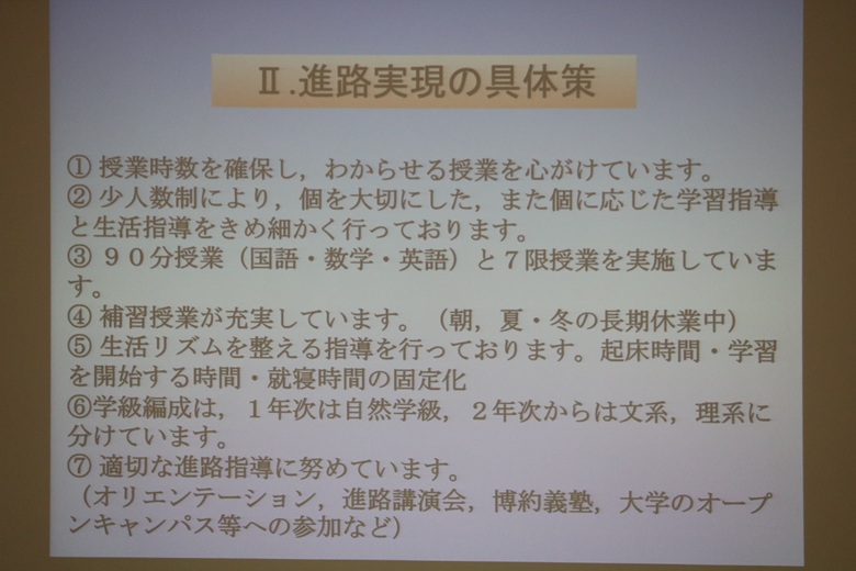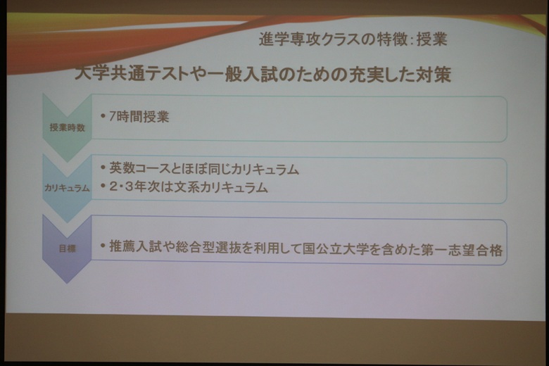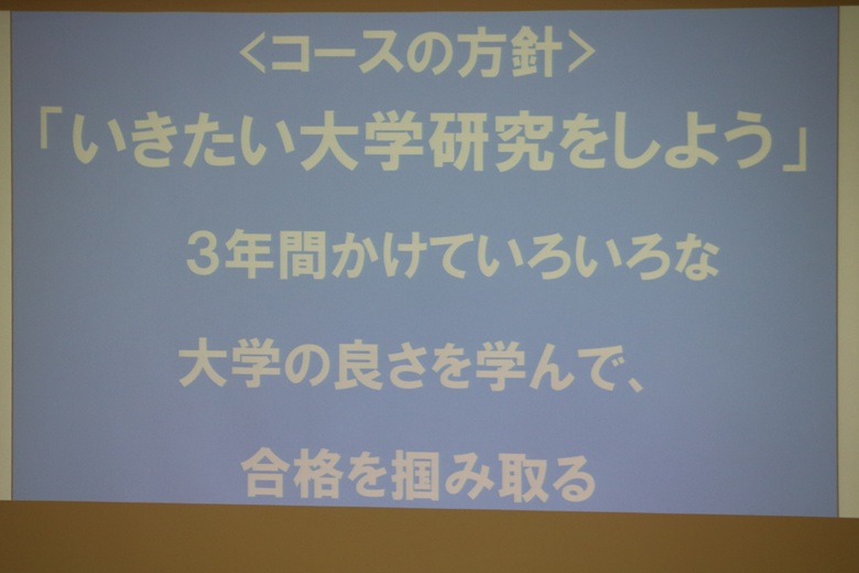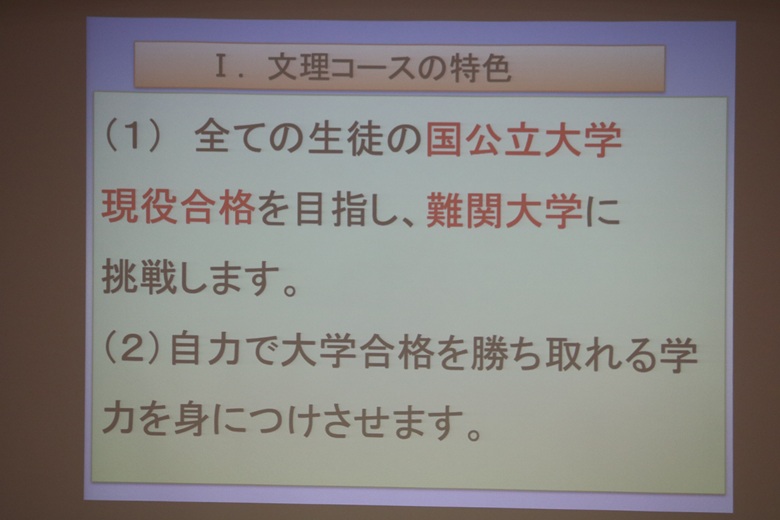 各コース主任が登壇し、コースの特色や進路実績や指導体制を詳しく紹介しました。