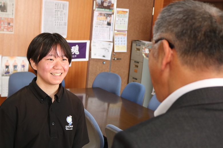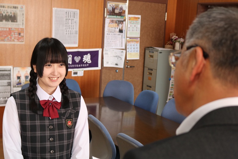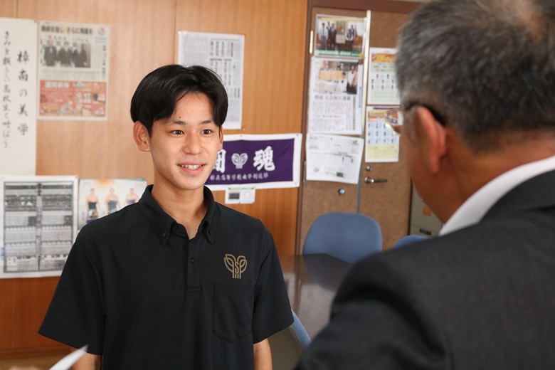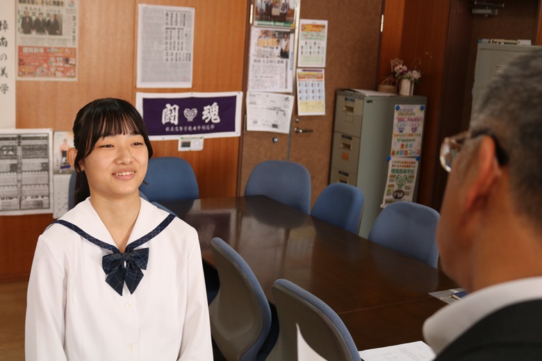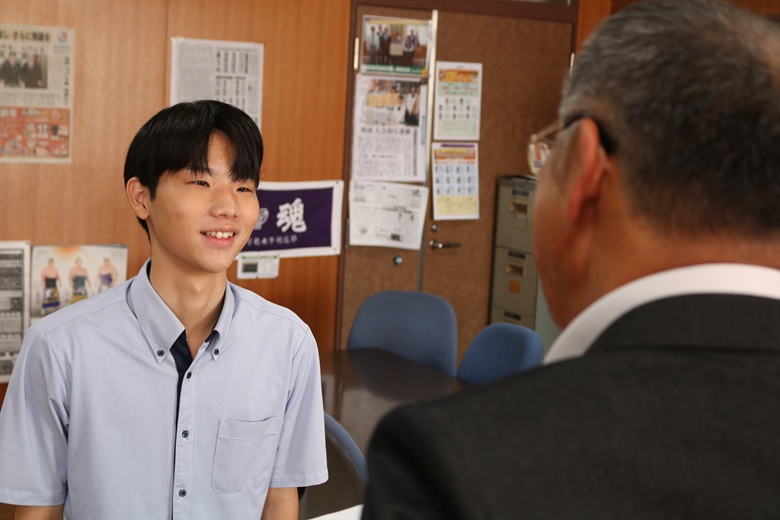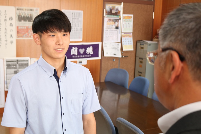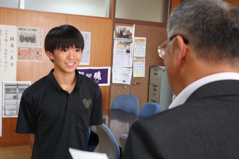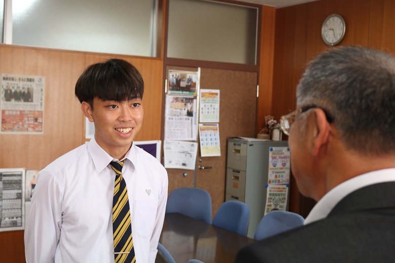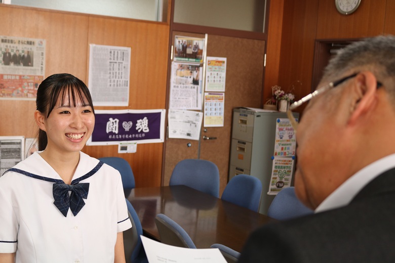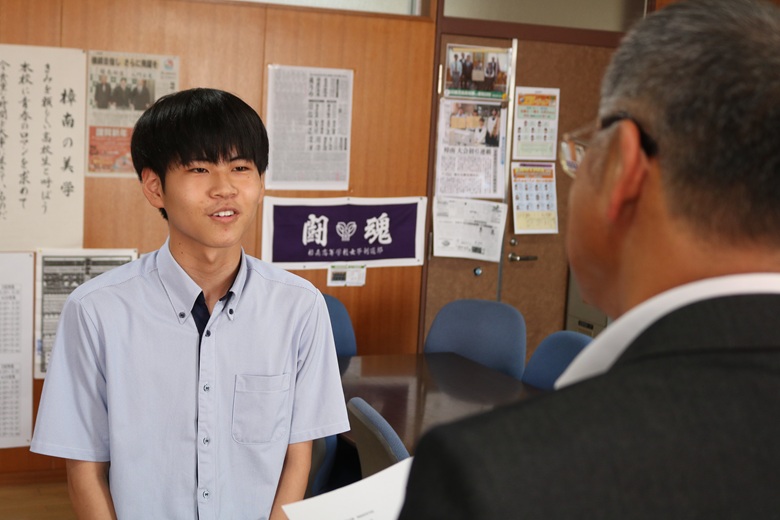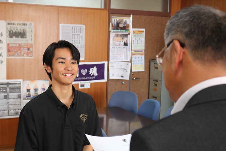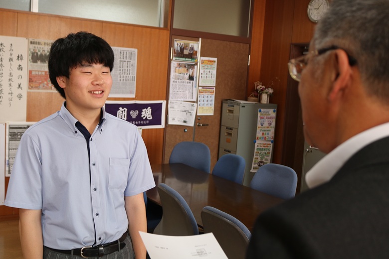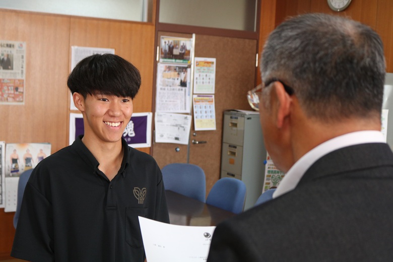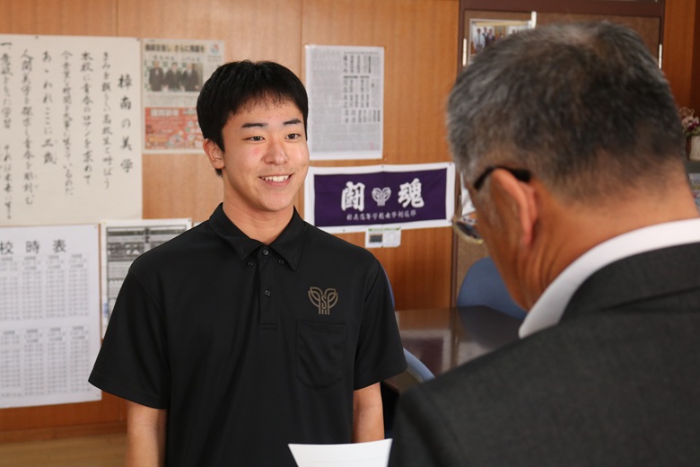 伝達式では、一人ひとりの生徒に山崎 隆志校長先生から内定通知が手渡され、温かな励ましの言葉がかけられました。緊張しながらも真剣な表情で受け取る姿には、高校生活で培った努力と自信がにじみ出ていました。