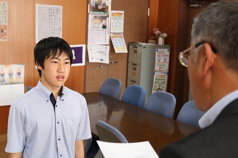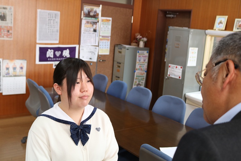 一人ひとりに山崎 隆志校長から内定通知が手渡され、これまでの努力をねぎらう温かい言葉がかけられました。少し緊張しながらも、うれしそうな笑顔を見せる生徒たちの姿がとても印象的でした。