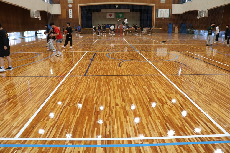 バスケ部も、軽やかに跳ねるボールとシュートの音が響き渡り、選手たちの動きがこれまで以上に生き生きとして見えます。新しい床の反発力と滑らかさが、プレーのスピードや精度を引き上げているのを実感できます。