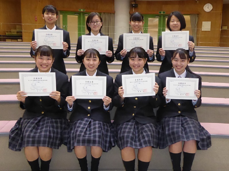 これまで3級の合格者は多数いましたが、今回初めて2級の合格者が出ました。下の写真は2級試験に合格した8名の皆さんです。