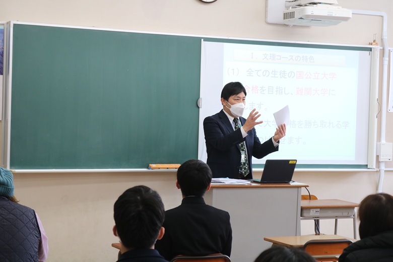 当日は朝から雪が舞う非常に寒い一日となりましたが、市内はもちろん、県外や離島からも多くの中学生・保護者の皆さまにご参加いただきました。寒さの中、足を運んでくださったことに、教職員一同、改めて御礼申し上げます。