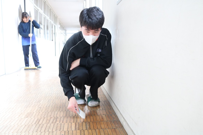 校舎を磨き上げることで、心も新たに新年を迎える準備が整いました。