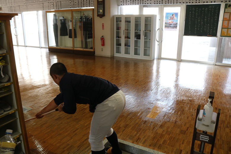 このワックス作業は、まさに樟南のモットー「がんばれば感動、今日も明るく精一杯」