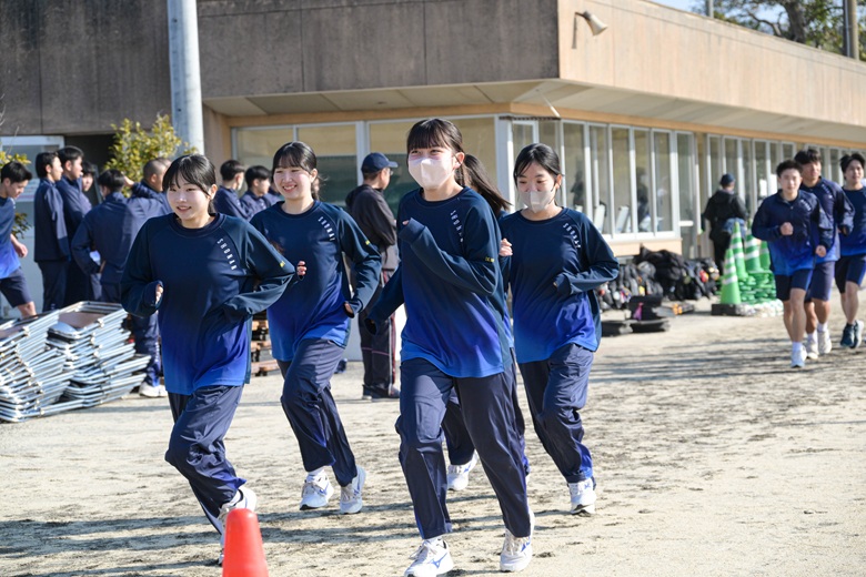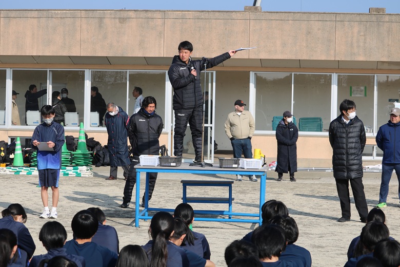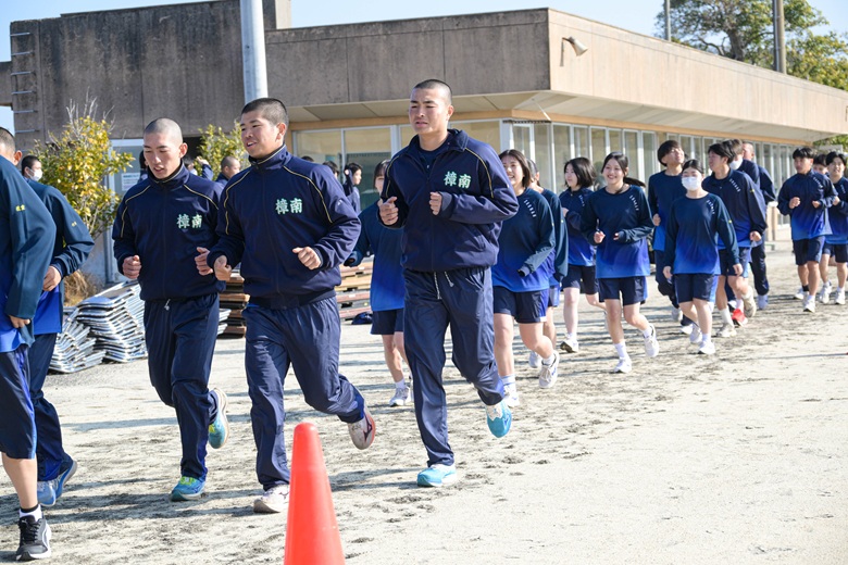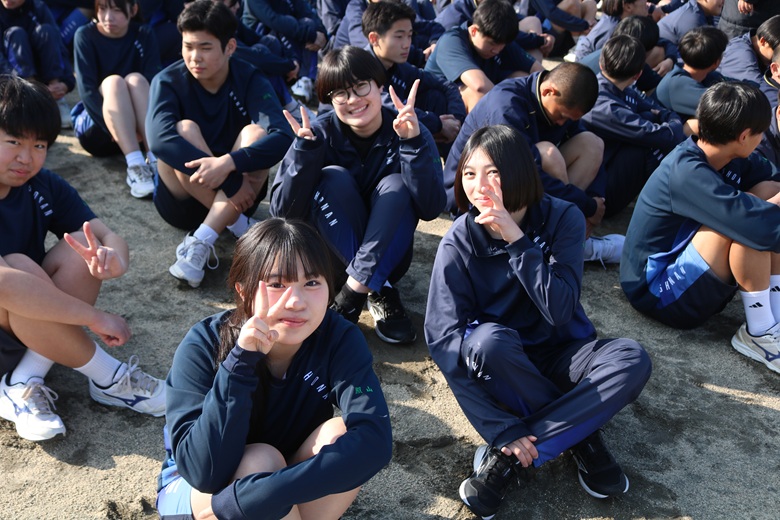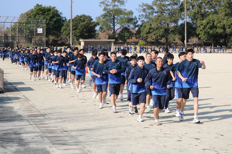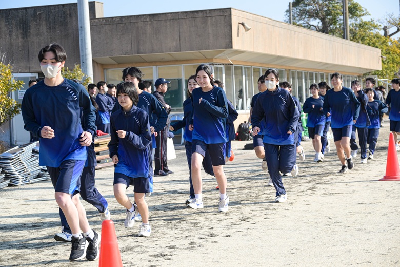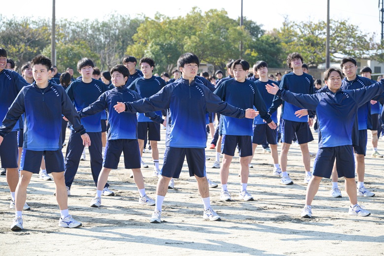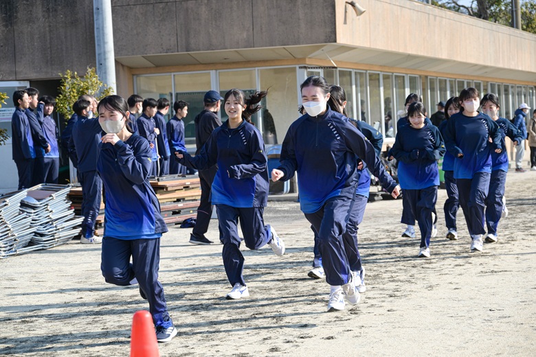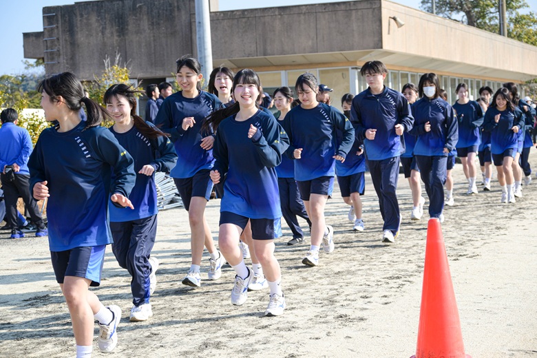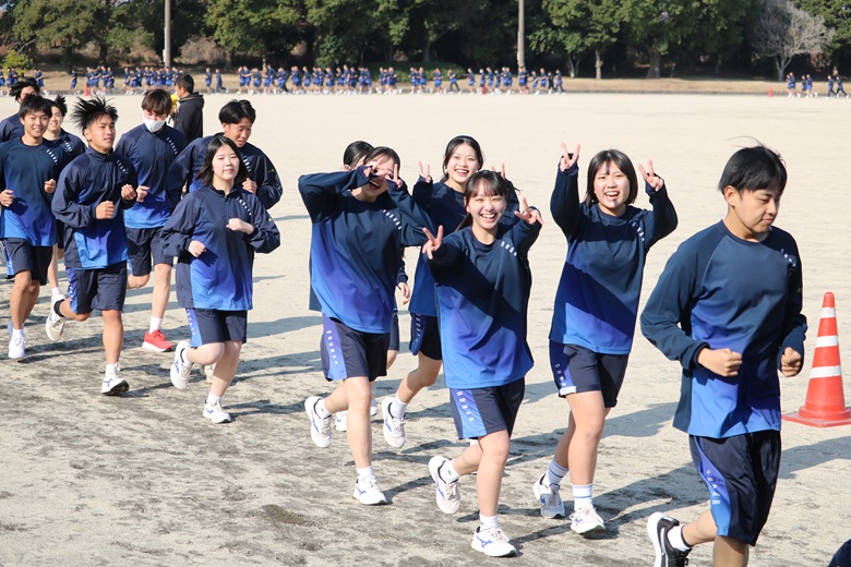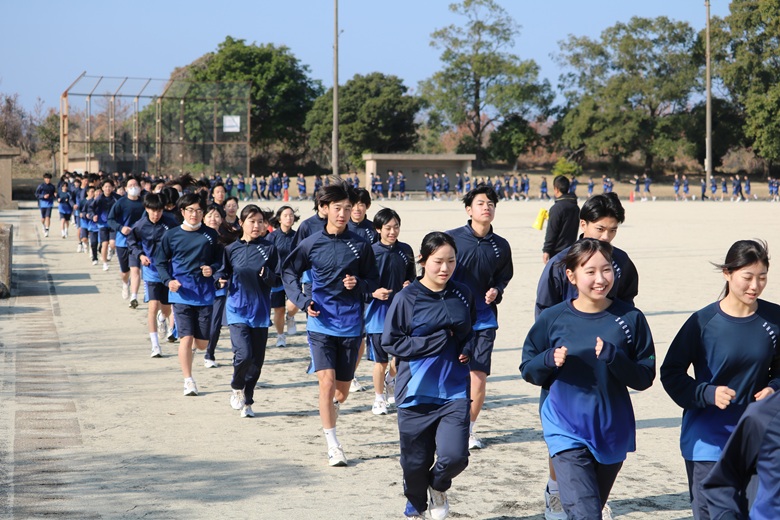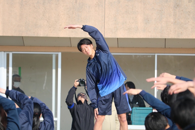 山崎 隆志校長先生からは、「順位だけでなく、自分自身との戦いを大切にしてください。最後まであきらめずに走りきることが、何よりも大きな成長につながります。」との激励の言葉が送られました。生徒たちは真剣な表情で耳を傾け、静かな決意が会場全体に広がりました。