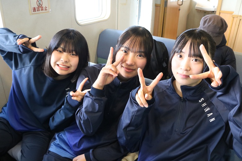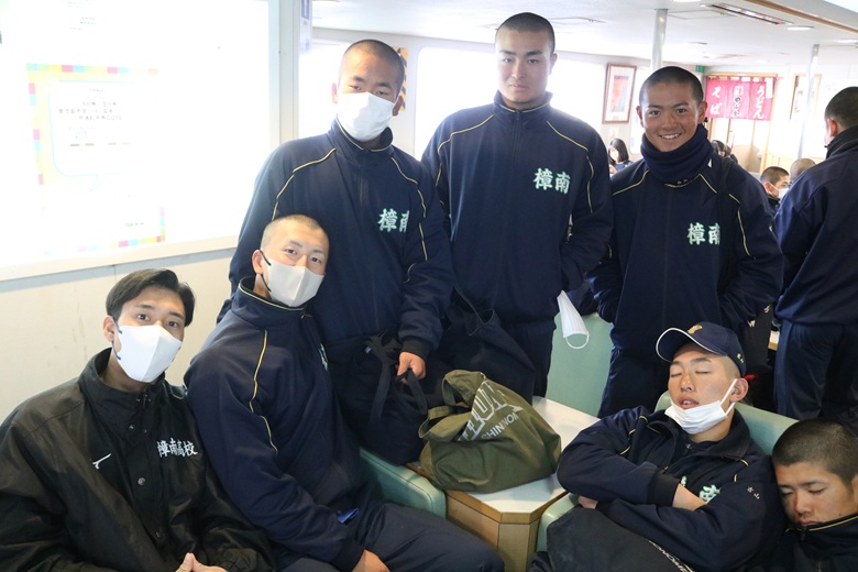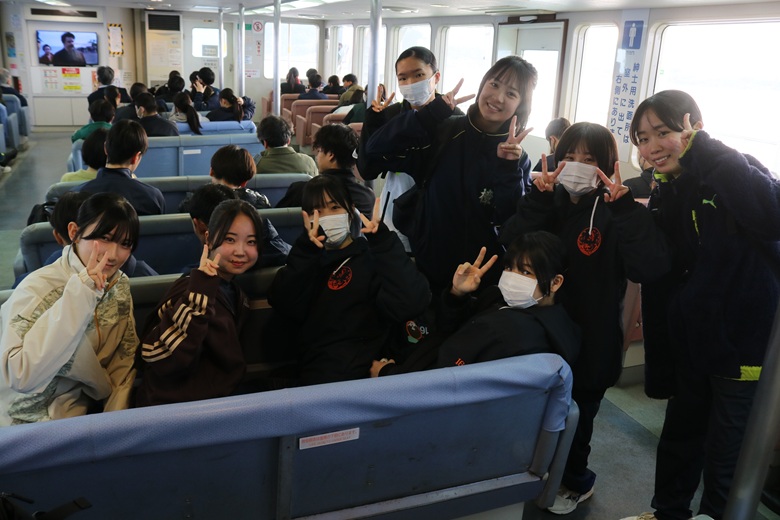 朝はフェリー乗り場に集合。少し緊張した面持ちの生徒、友達と笑顔で話す生徒、それぞれの表情に「今日をがんばるぞ」という思いがあふれていました。