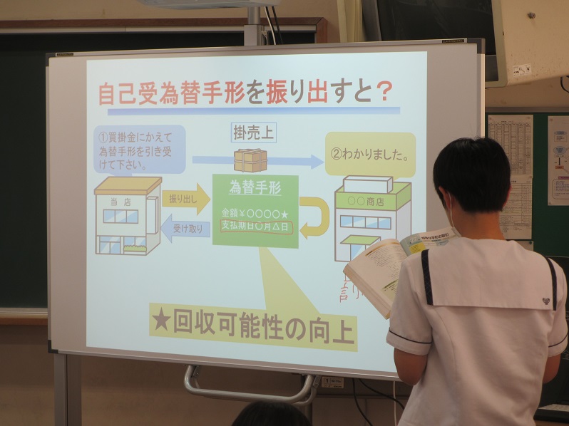 教科書を読んでもらい、学習している自己受為替手形の内容を強固なものにしました。