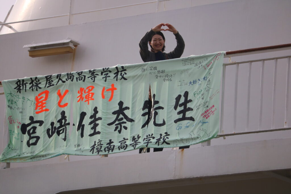 宮﨑先生がフェリーに乗船すると、顧問であった吹奏楽部の生徒達による演奏が始まりました。