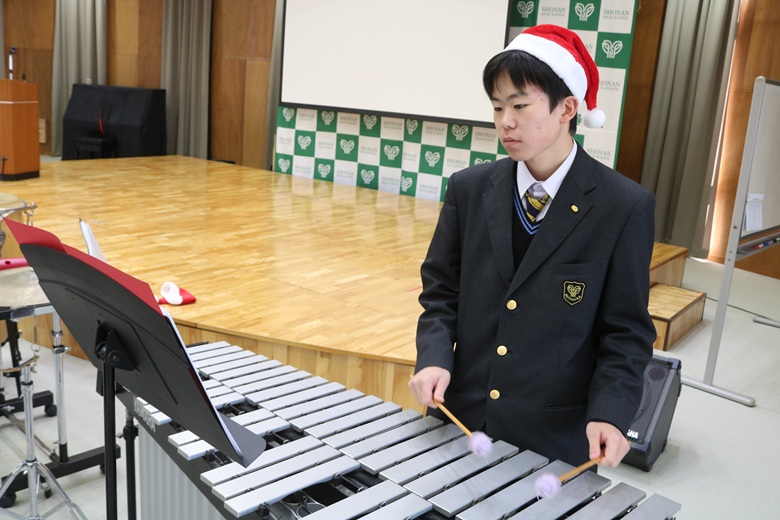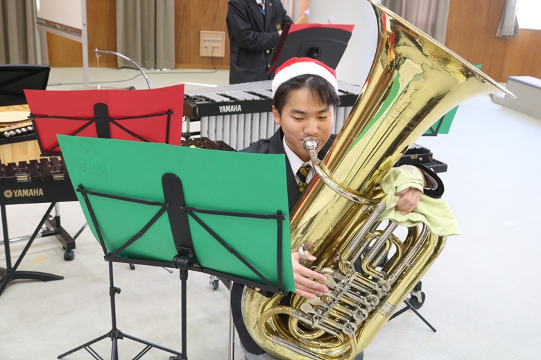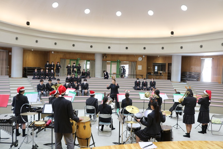 この日、吹奏楽部によるクリスマスコンサートが開催され、ホール全体がこれから始まる演奏への期待感に包まれていました。
