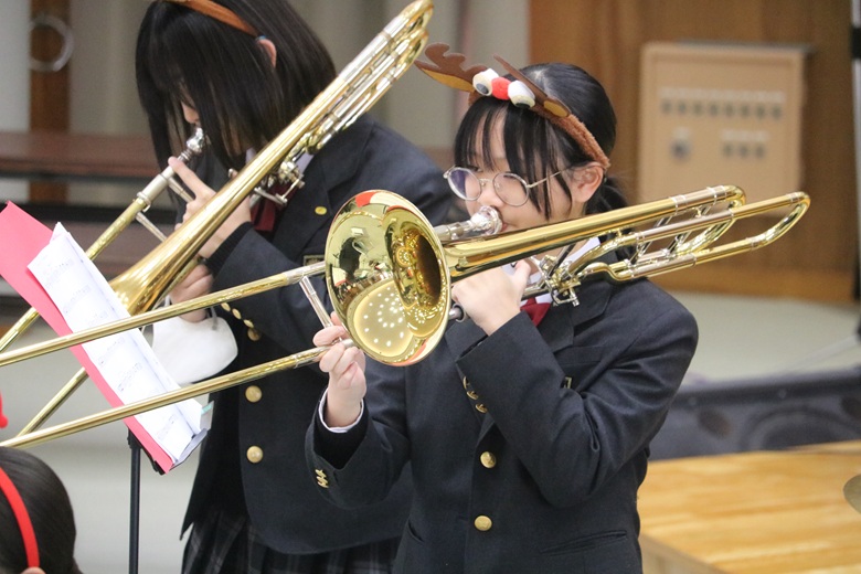 本日は12月15日(月)の昼休みに多目的ホールにて、あたたかな音楽が響き渡りました。
