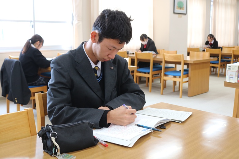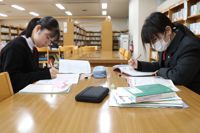 最終日を迎えるにあたり、特に印象に残っているのが、昨日・期末考査4日目の午後の学習の様子です。図書室では参考書やノートが机いっぱいに広がり、ページをめくる音だけが響くほど静かな集中の空気に包まれていました。