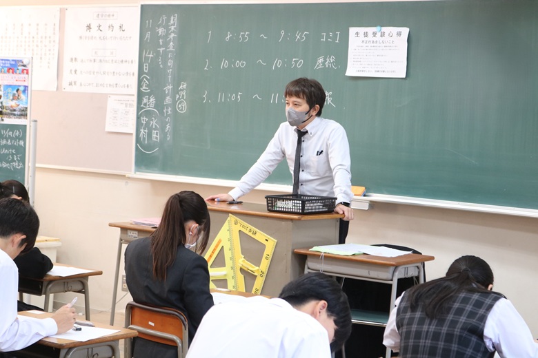 現在、本校は2学期期末考査が始まりました。3年生の文理・英数コースは最後の定期考査のため、卒業考査となっています。