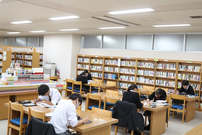 図書室では、試験の疲れを感じさせないほど、真剣に机に向かう生徒たちの姿が多く見られました。静寂の中、ページをめくる音や、ノートに文字を書く音だけが聞こえ、穏やかながらも集中した空気が広がっていました。