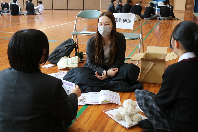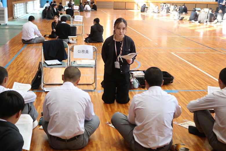 また、教室での個別ブースでは、担当者の方々が熱意をもって説明してくださる中、生徒たちはメモを取りながら真剣に話を聞く姿が印象的でした。普段は教科書やインターネットだけでは得られない生の情報に触れ、進路に対する理解を深めることができたと思います。