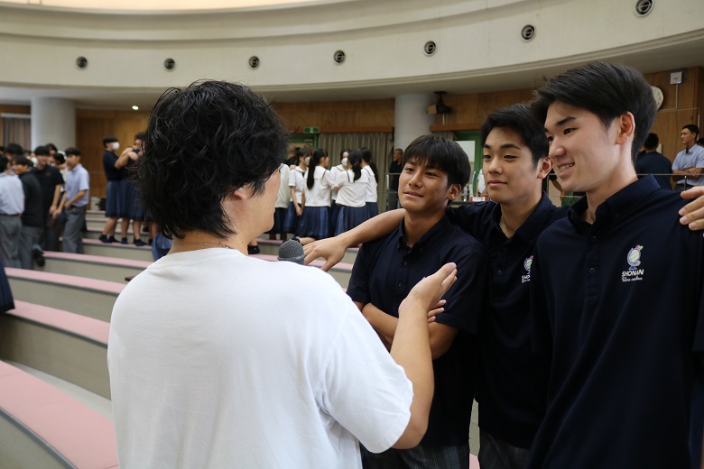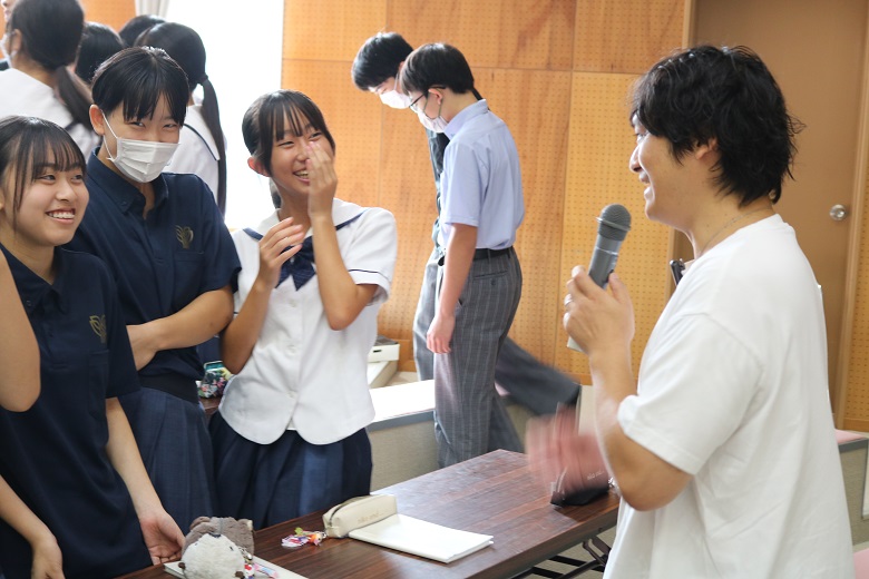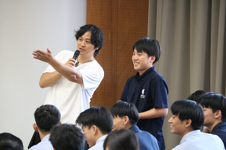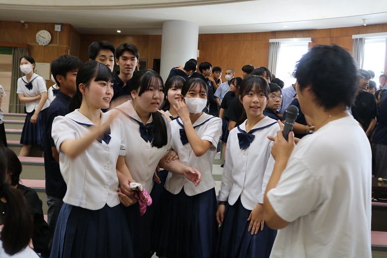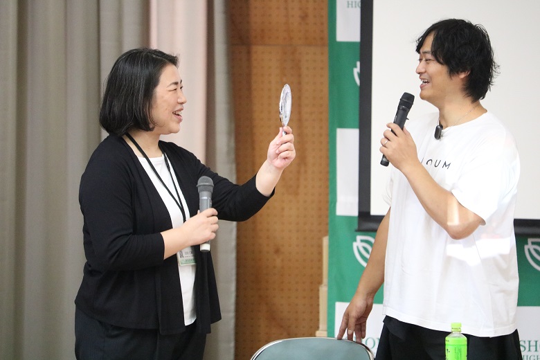 吹奏楽部顧問である田畑先生ですが、吹奏楽部の生徒からは「輝いて見えます!」と感想を言ったら会場は笑いに包まれました。