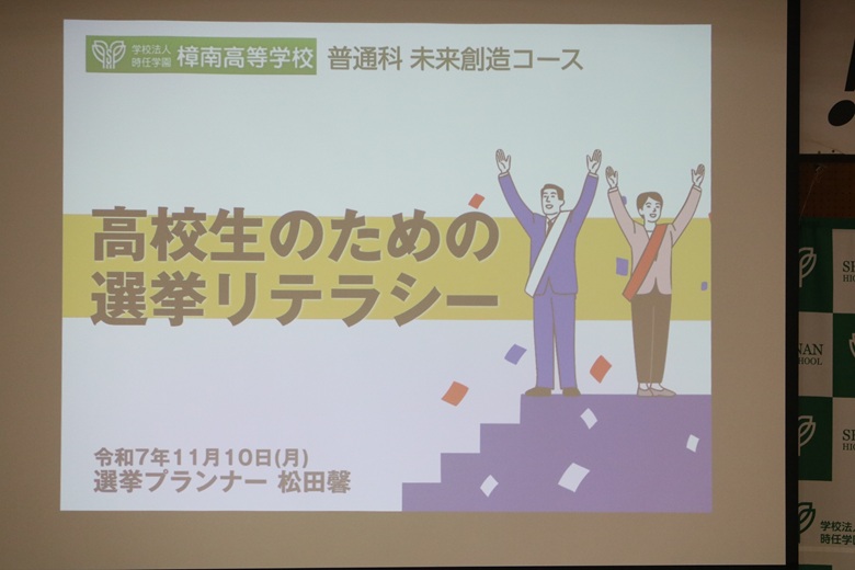 今回は、日本で珍しい職業「選挙プランナー」の松田先生に、選挙や民主主義、政治家の仕事についてお話を伺いました。普段なかなか触れることができない政治の仕組みや選挙の現実を、生徒にもわかりやすく説明していただきました。