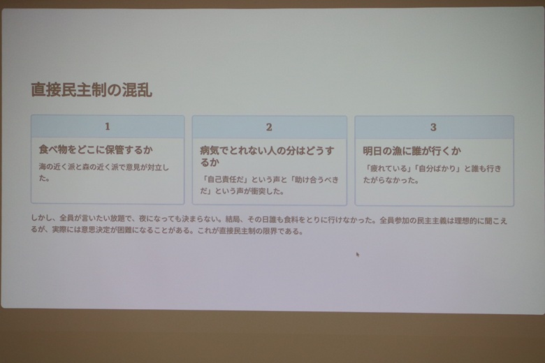 直接民主制の失敗:大人がいなくなり、全員で話し合っても意見がまとまらず、何も決められません