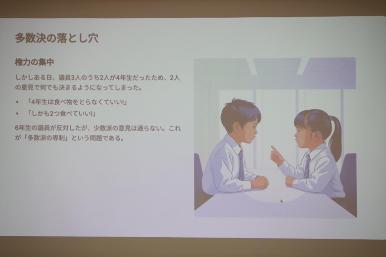 多数派の専制:多数決で少数派の意見が無視されることも