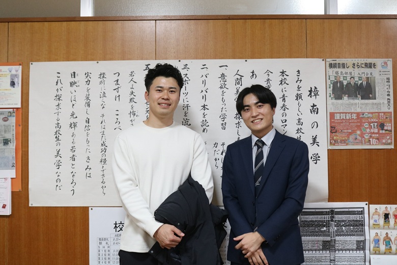 今回の訪問を通して、松本晴選手がプロの世界で味わう喜びや悔しさをまっすぐに受け止め、そのすべてを成長の糧として歩み続けていることが伝わってきました。母校で見せてくれた謙虚さと誠実さは、樟南高校で過ごした時間が彼の中で大切な原点となっていることを感じさせます。本校はこれからも松本晴選手の挑戦を誇りに思い、その活躍を心から応援してまいります。また元気な姿で母校に帰ってきてくれる日を、生徒・教職員一同楽しみにしています。
