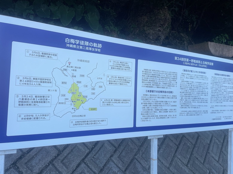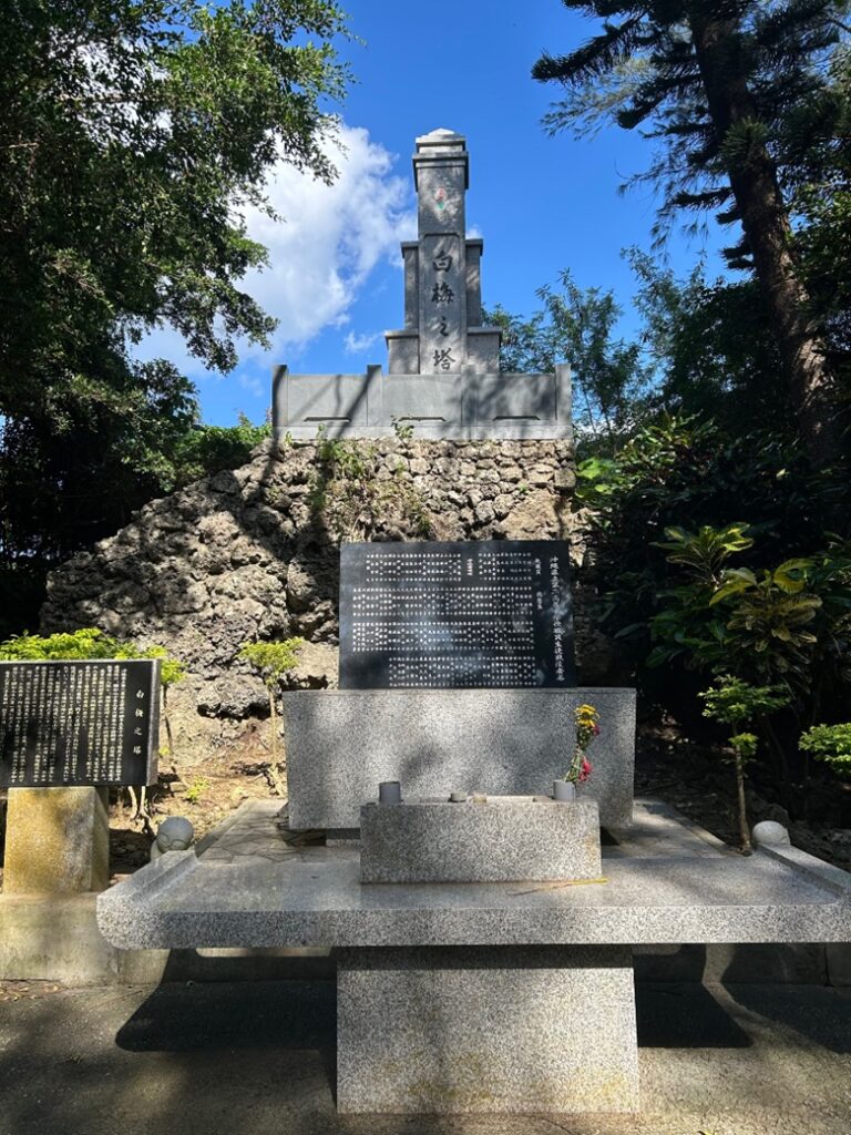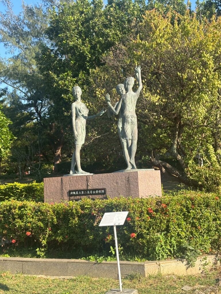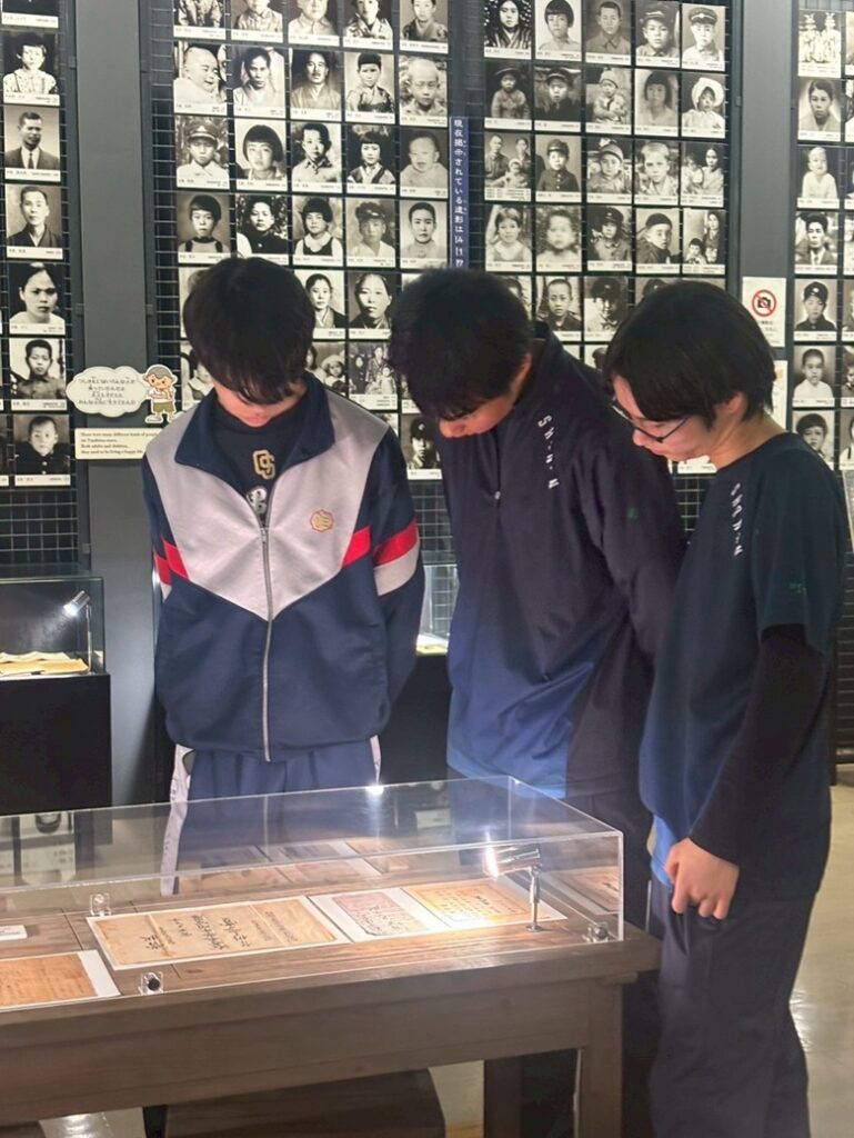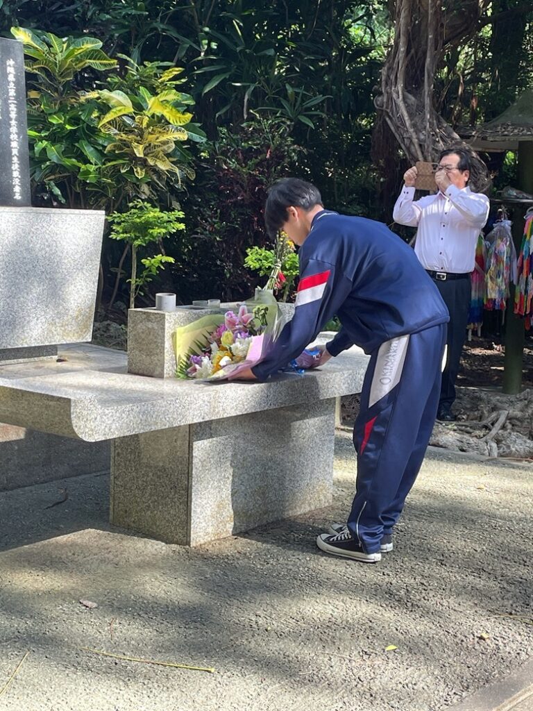 2日目は、沖縄の歴史と真正面から向き合う時間。白梅学徒隊の足跡を巡るフィールドワークでは、当時を生きた同世代の少女たちの想いに触れ、胸が締めつけられる思いを抱きました。沖縄県立第二女学校跡を訪れ、さらに対馬丸記念館での講話を通して、平和が決して当たり前ではないこと、命の重みを次世代へつなぐ責任があることを深く実感しました。真剣な表情で耳を傾ける姿は、写真からもその学びの深さが伝わってきます。