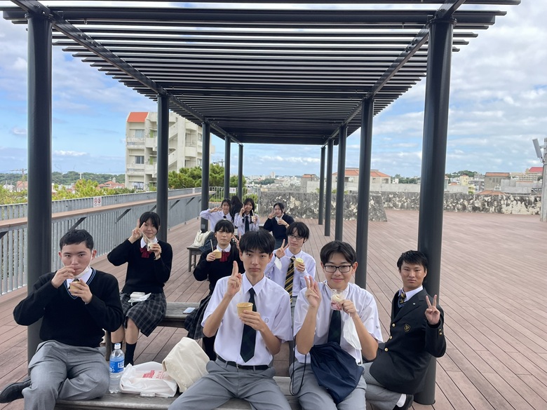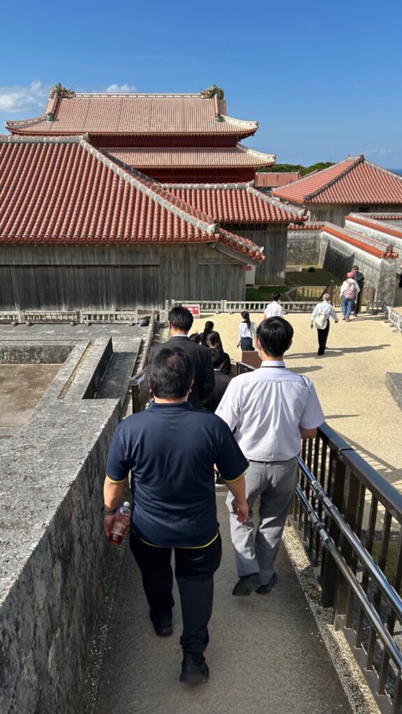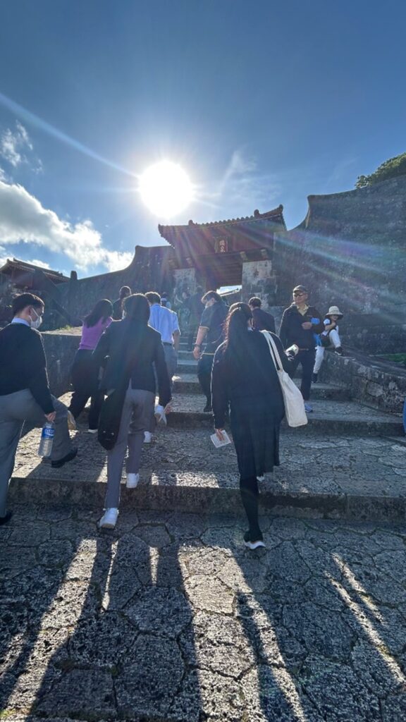 最終日は首里城公園を訪問。復興が進む首里城の堂々たる姿は、困難を乗り越えて未来へ進む沖縄の象徴のようでした。その姿は、生徒たち自身のこれからとも重なります。