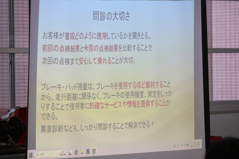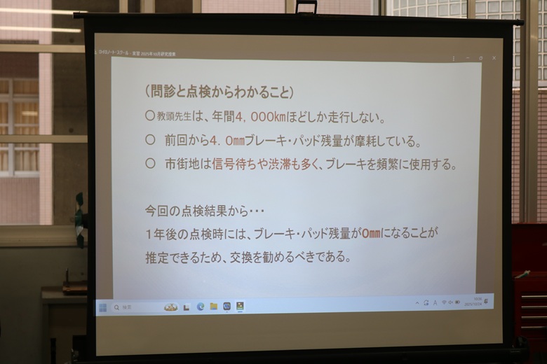 ブレーキパッドを交換した方がいいか、交換しなくていいかをグループで話し合い結論を出す時間が設けられました。