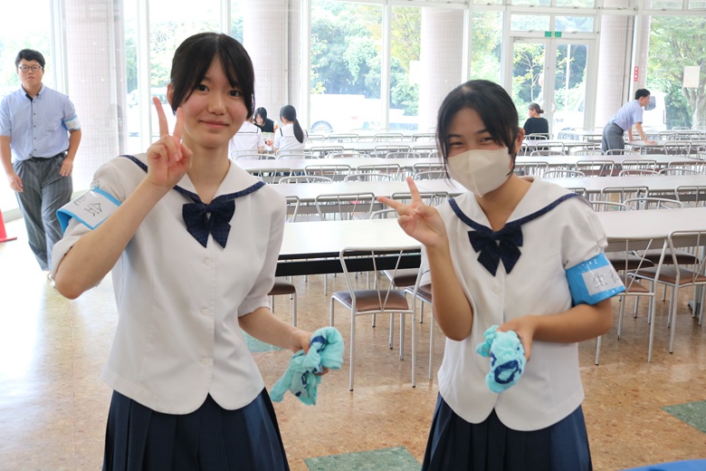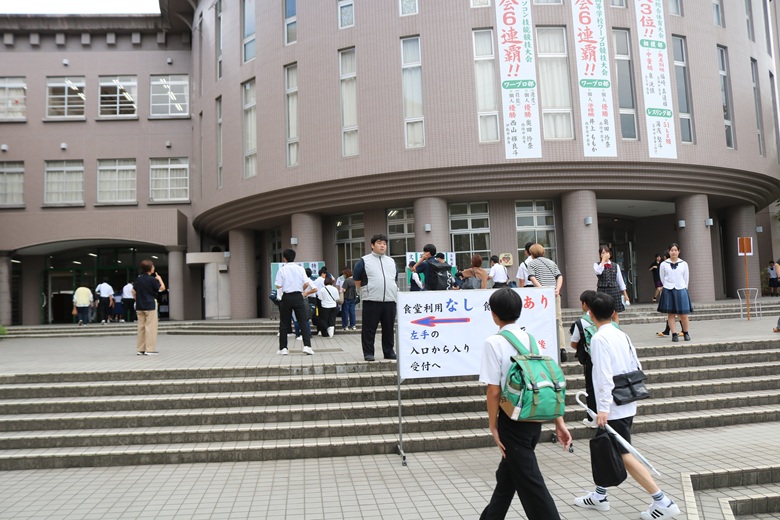 まずは皆さんをお出迎えしたのは、各コースの補助員と女子バレーボール部の皆さんが対応させていただきました。