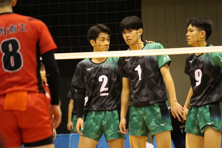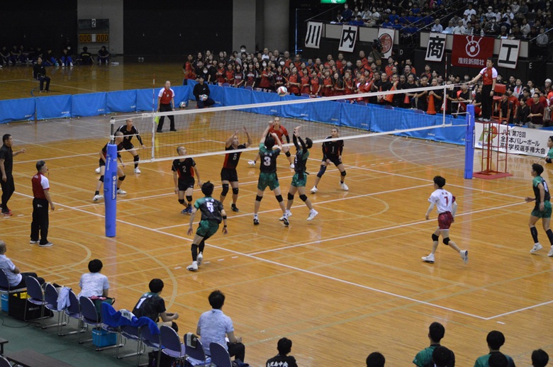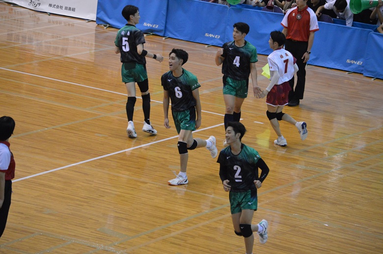 3日目の準決勝戦では鹿児島商業さんと戦い、第1セットは相手の高速コンビバレーにうまく対応できなかったのですが第2セット、第3セットでは粘りのバレーを見せることができフルセットの末、勝利を掴むことができました。