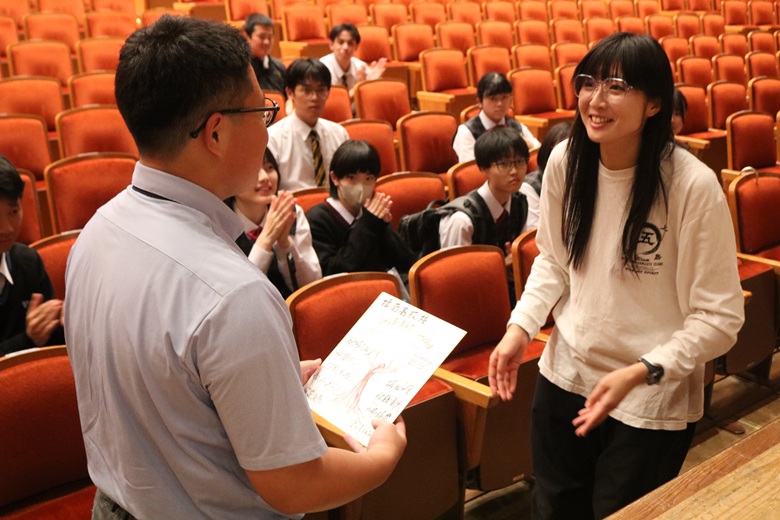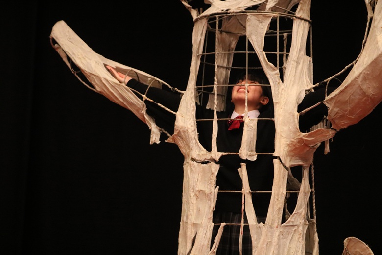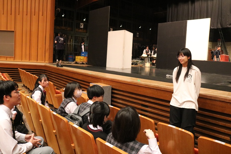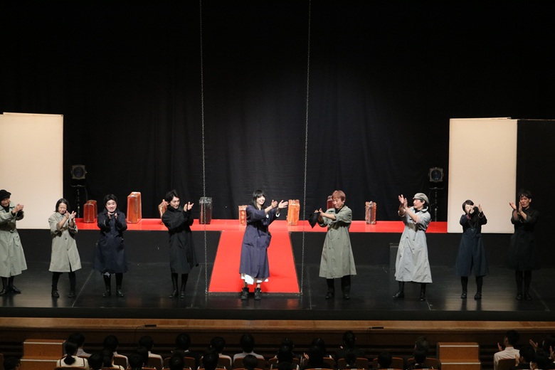 壮大な音楽と証明、そして俳優の迫真の演技により、ジャンヌの信念と勇気が力強く描かれ、生徒たちは終始真剣な表情で舞台に見入っていました。終演後には、会場いっぱいに温かな拍手が送られました。