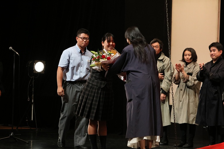 私自身、演劇には興味がありましたが、これまで生でプロの演劇を見たことがなかったので、今日初めて見てみて感動しました。私だけでなく、多くの生徒が「侮蔑」「羨望」「嫉妬」「疑念」などの黒いマイナスの感情や「希望」「信奉」「信頼」「愛情」などの明るいプラスの感情等の人間らしさを劇を通じて強く実感し、またジャンヌの小さな炎とも呼べる信念を劇中の声を通じて一人一人が受け継ぎ、これから希望を持って生きていこうと思います。今日はありがとうございました。