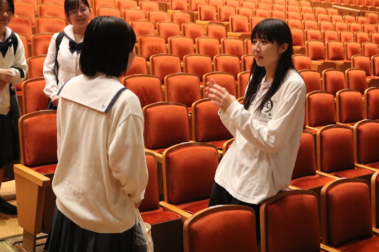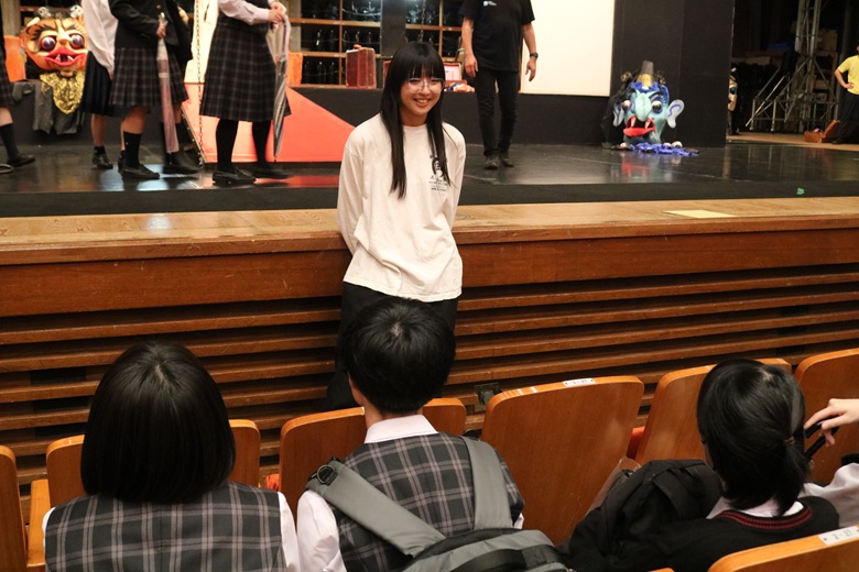 さらに今回は、ジャンヌ・ダルク役を務めた高階 ひかりさんとの座談会も実施されました。生徒のたくさんの質問に一つひとつ丁寧に答えてくださり、演技に込めた思いや、役を通して伝えたいメッセージなどを直接うかがうことができました。