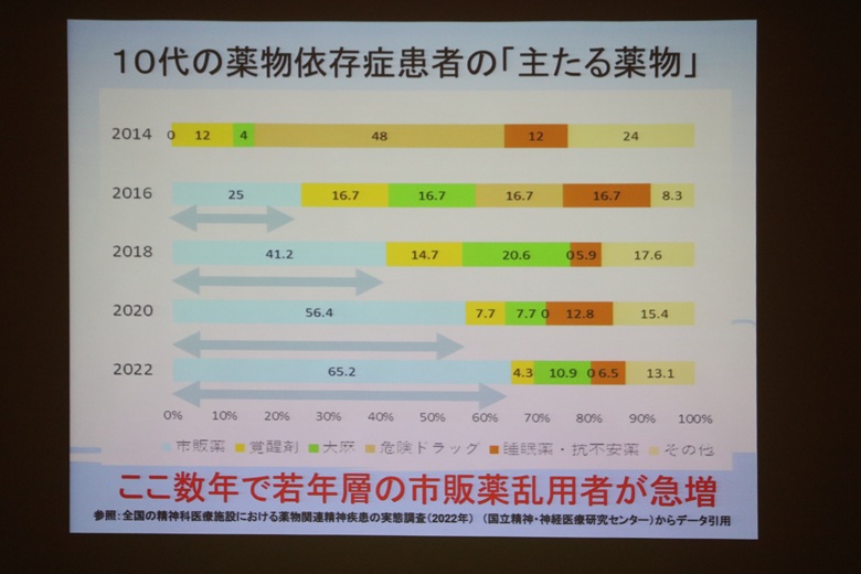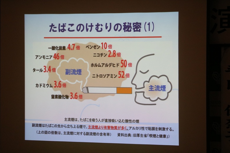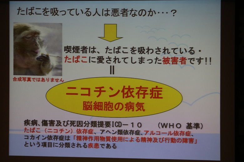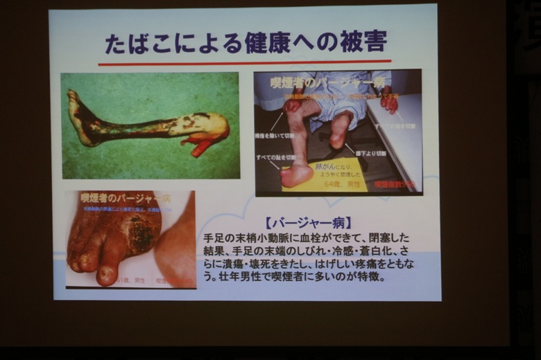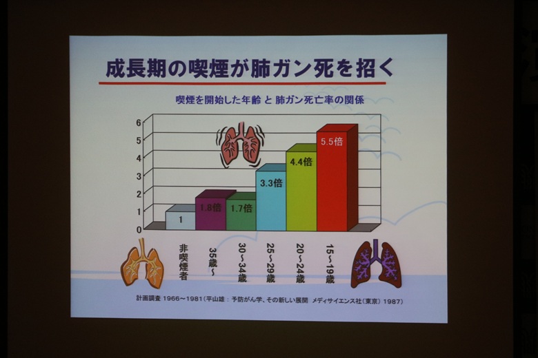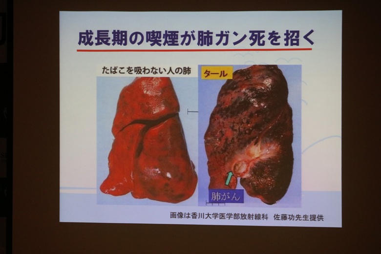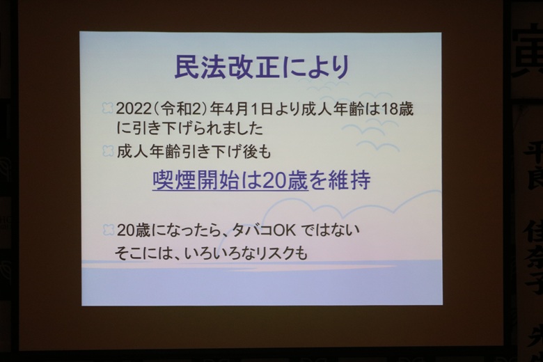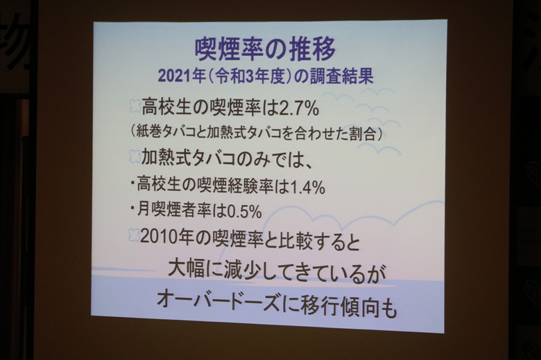 薬物の定義、乱用の危険性、特に市販薬のオーバードーズやタバコの依存性について詳細に説明していただきました。また、山王先生は、薬物乱用防止教育の一環として、タバコの害を含め、覚醒剤や大麻などの危険な薬物の話をする前に、タバコが必ず存在しているという点を強調されました。