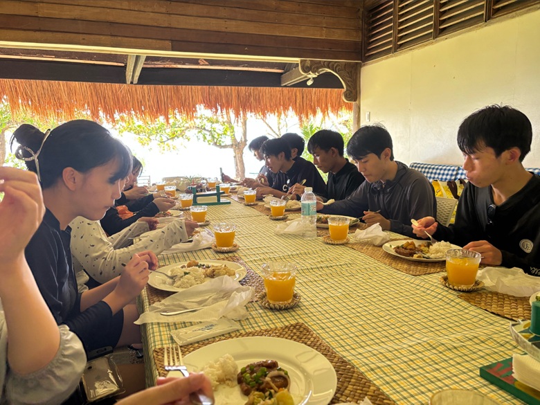 この日はカオハガン島へ。青い海を船で進みながら、非日常の景色に歓声が上がりました。少し船酔いをする生徒もいましたが、シュノーケリングや島散策を通して大自然を満喫。透き通る海と豊かな自然に囲まれ、忘れられない思い出がまた一つ増えました。