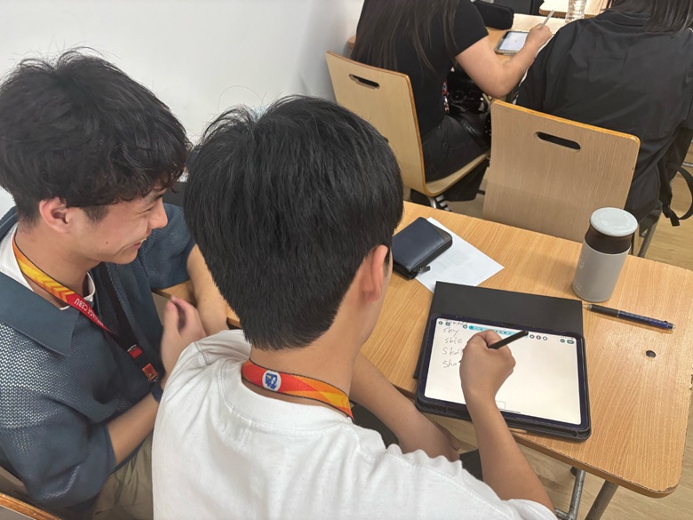 この日から本格的な授業がスタート。英語だけの環境に苦戦しながらも、何とか伝えようとする姿勢が随所に見られました。「間違えてもいいから話してみる」――そんな前向きな変化が少しずつ表れてきました。