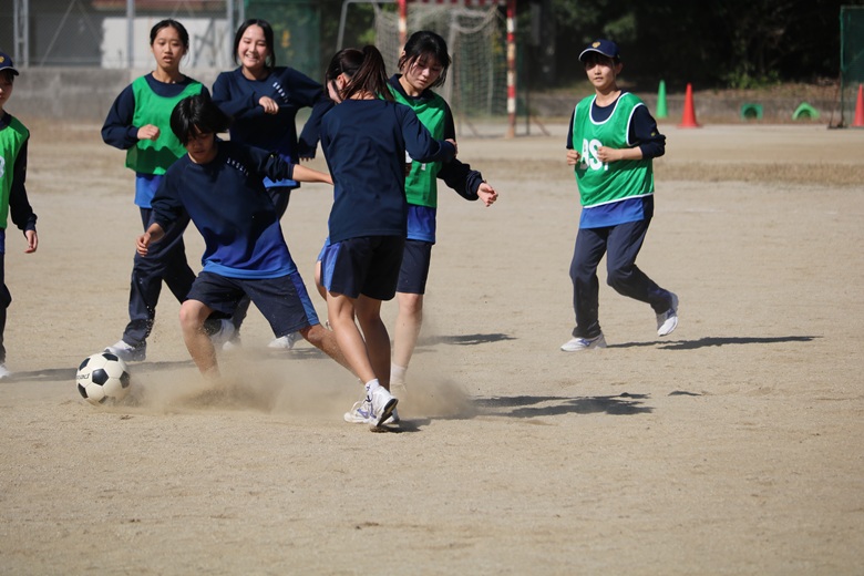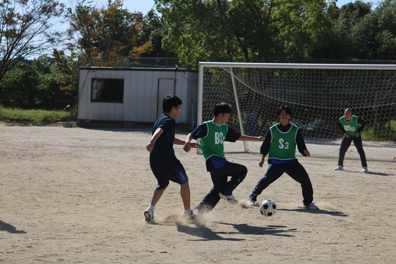 朝からグラウンドには笑い声と応援の声が響き渡り、どのクラスも優勝を目指して熱い戦いを繰り広げました。普段は勉強や部活動で忙しい日々ですが、この日はみんながクラス一丸となってボールを追いかける特別な時間。ゴールが決まるたびに歓声が上がり、ミスしても仲間がすぐに声をかけて励ます姿が印象的でした。