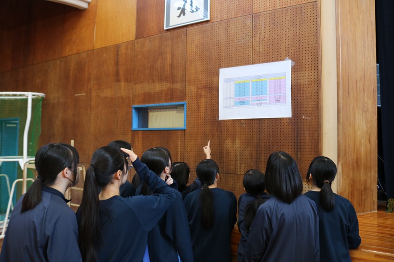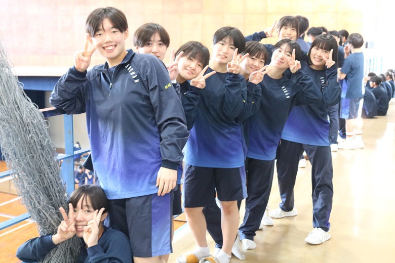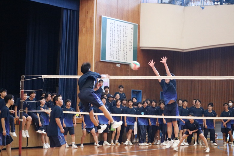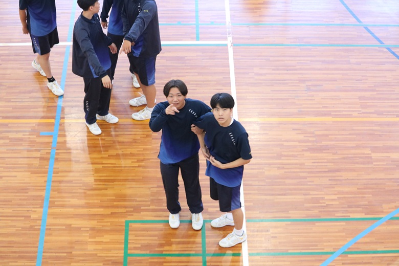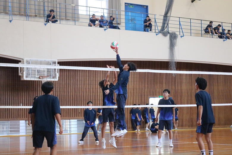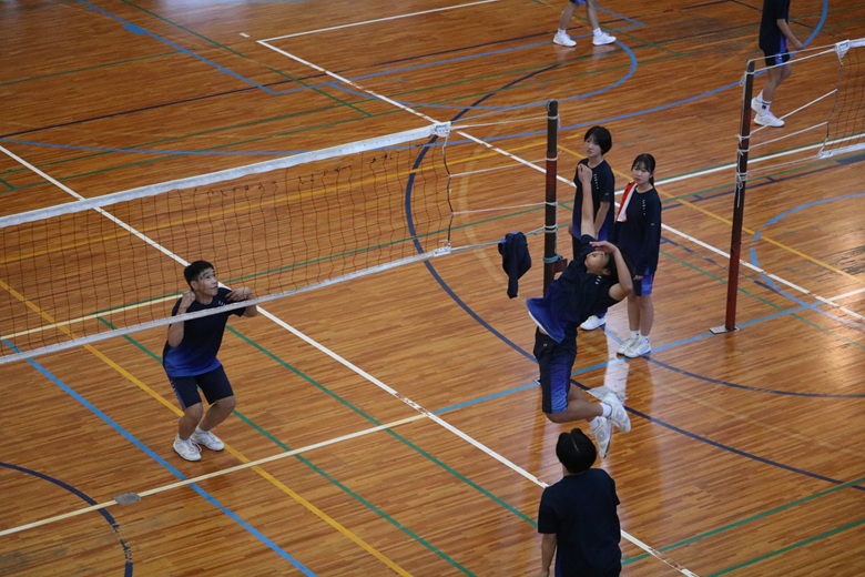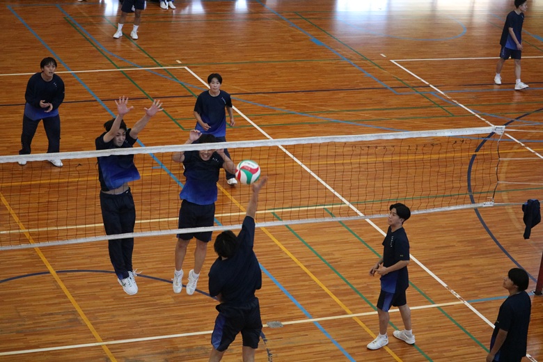 会場には歓声と応援の声が響き渡り、ボールをつなぐたびにチームの団結力が感じられる試合が続きました。サーブ、トス、スパイク、一つひとつのプレーに全員が集中し、仲間を信じてボールを託す姿が印象的でした。ラリーが続くたびに、応援席からも自然と拍手が起こり、まさに「全員で戦う」一日となりました。勝っても負けても、試合後には笑顔で「楽しかった!」と声をかけ合う生徒たちの姿が印象的で、スポーツを通してクラスの絆が一層深まった一日となりました。